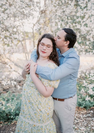 Spring was just starting to bloom, and the dogwoods were in full swing, creating a beautiful backdrop for Victoria and Connor’s photos. There’s something about spring that feels fresh and full of possibility, and this session captured that perfectly. The soft sunlight, the blooming flowers, and the amazing couple—it all came together beautifully.