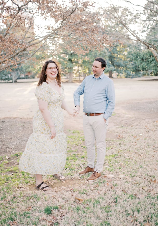 Their easy-going nature made this session feel more like a fun hangout than a photoshoot! We shot these photos at Southeastern Baptist Theological Seminary in Wake Forest, which has quickly become one of my favorite spots. The campus is full of stunning architecture and greenery, and the light there is always perfect.